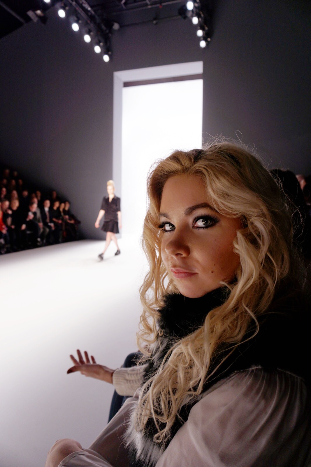 Nadine Trompka in der Front Row bei Zukker auf der Mercedes-Benz Fashion Week